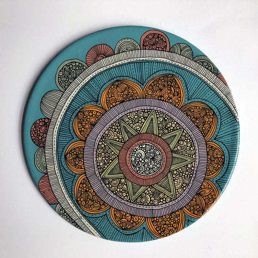 Hand painted Ceramic Plate Geometric Pattern - One of a Kind