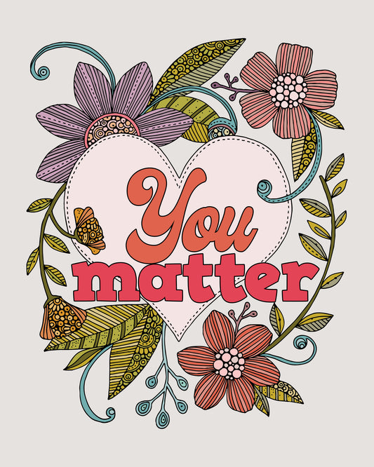 You Matter, Art Print - Affirming Heart & Floral Decor