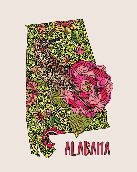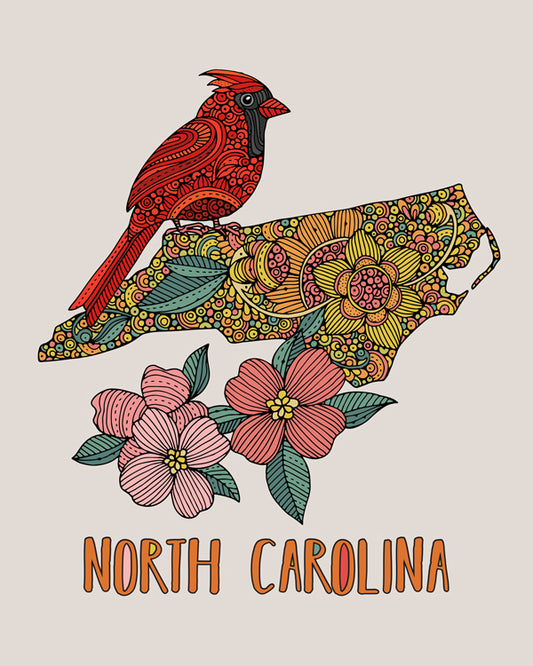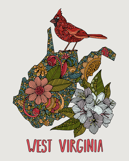 Indiana State Map - State Bird Cardinal - State Flower Peony