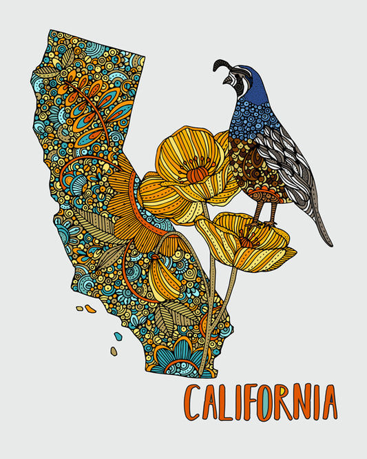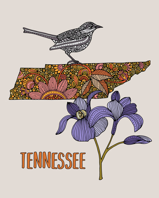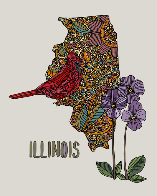 Illinois State Map - State Bird Cardinal - State Flower Purple Violet