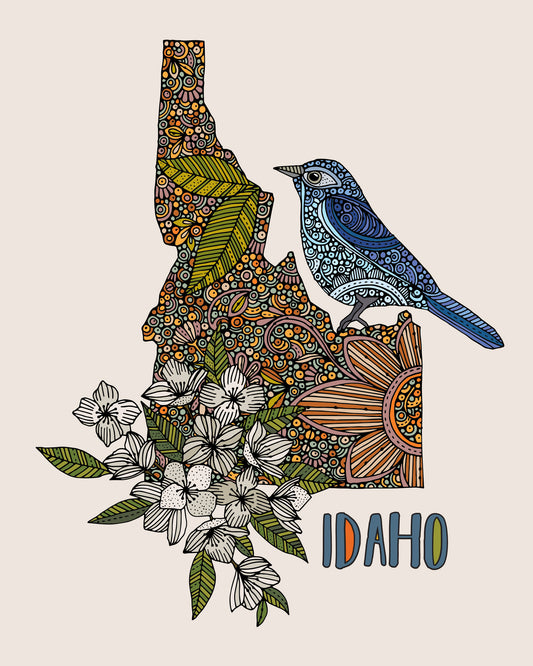 Idaho State Map - State Bird The Mountain Bluebird - State Flower Syringa