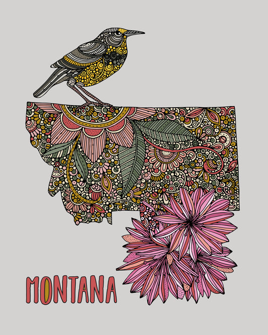 Montana State Map - State Bird Western meadowlark- State Flower Bitterroot