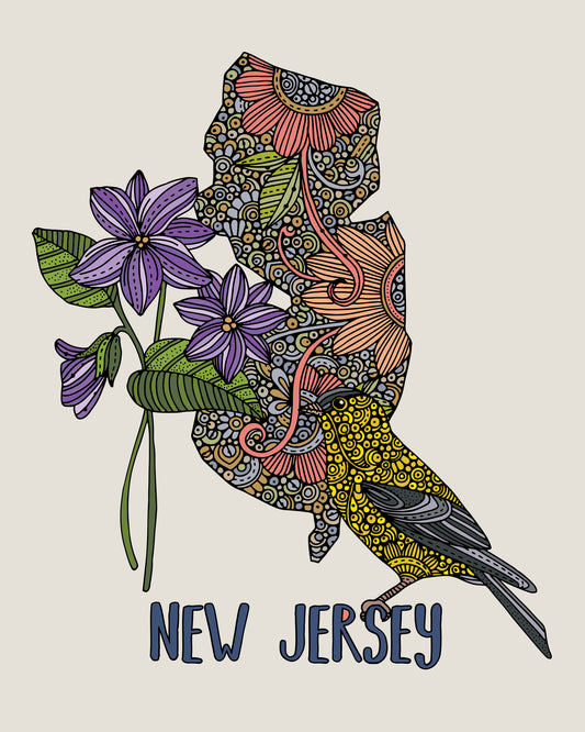 New Jersey State Map - State Bird Violet