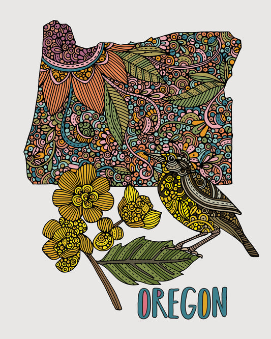 Oregon State Map - State Bird Western Meadowlark - State Flower Oregon Grape