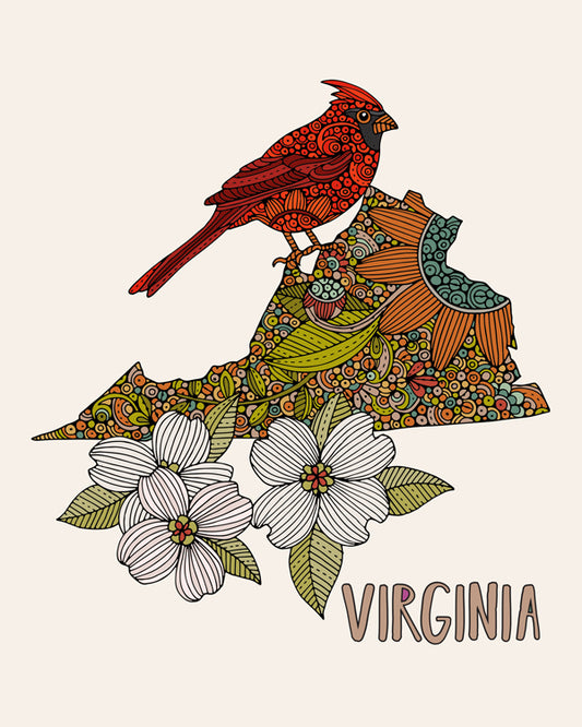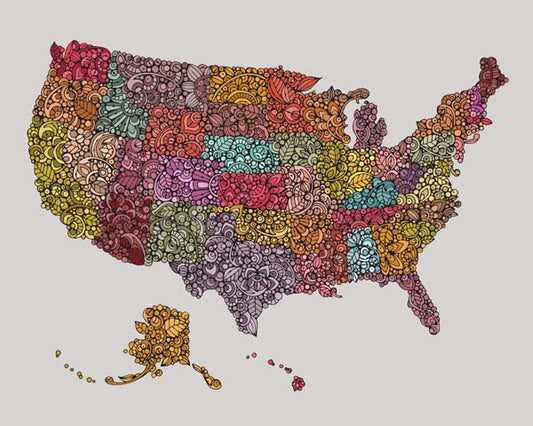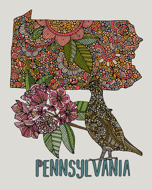 Pennsylvania State Map - State Bird Ruffed Grouse - State Flower Mountain Laurel