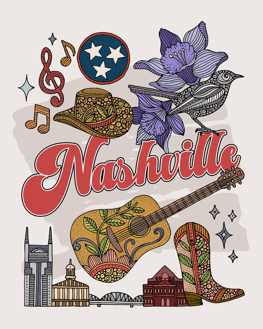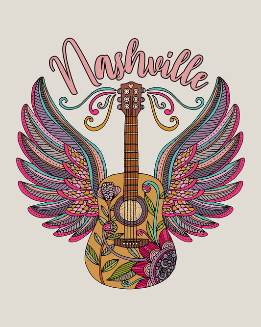 Nashville Harmony: Wings and Guitar Art Print - Country Music Wall Decor