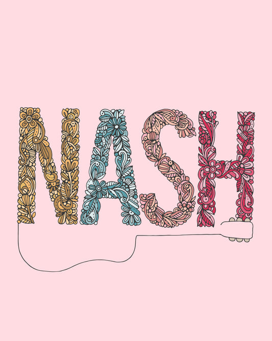 Nash Guitar Trendy Pink backgound - Country Music Wall Decor