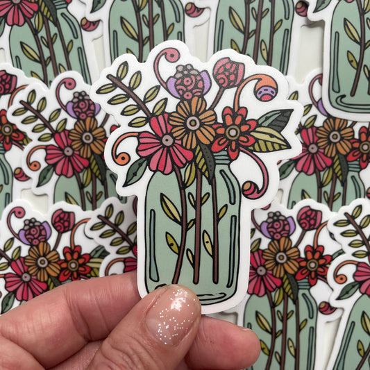 Jar with Flower, Vinyl Sticker