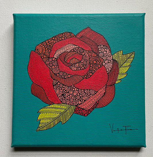 La Rosa- Original Pen and Ink Artwork - 6x6 canvas