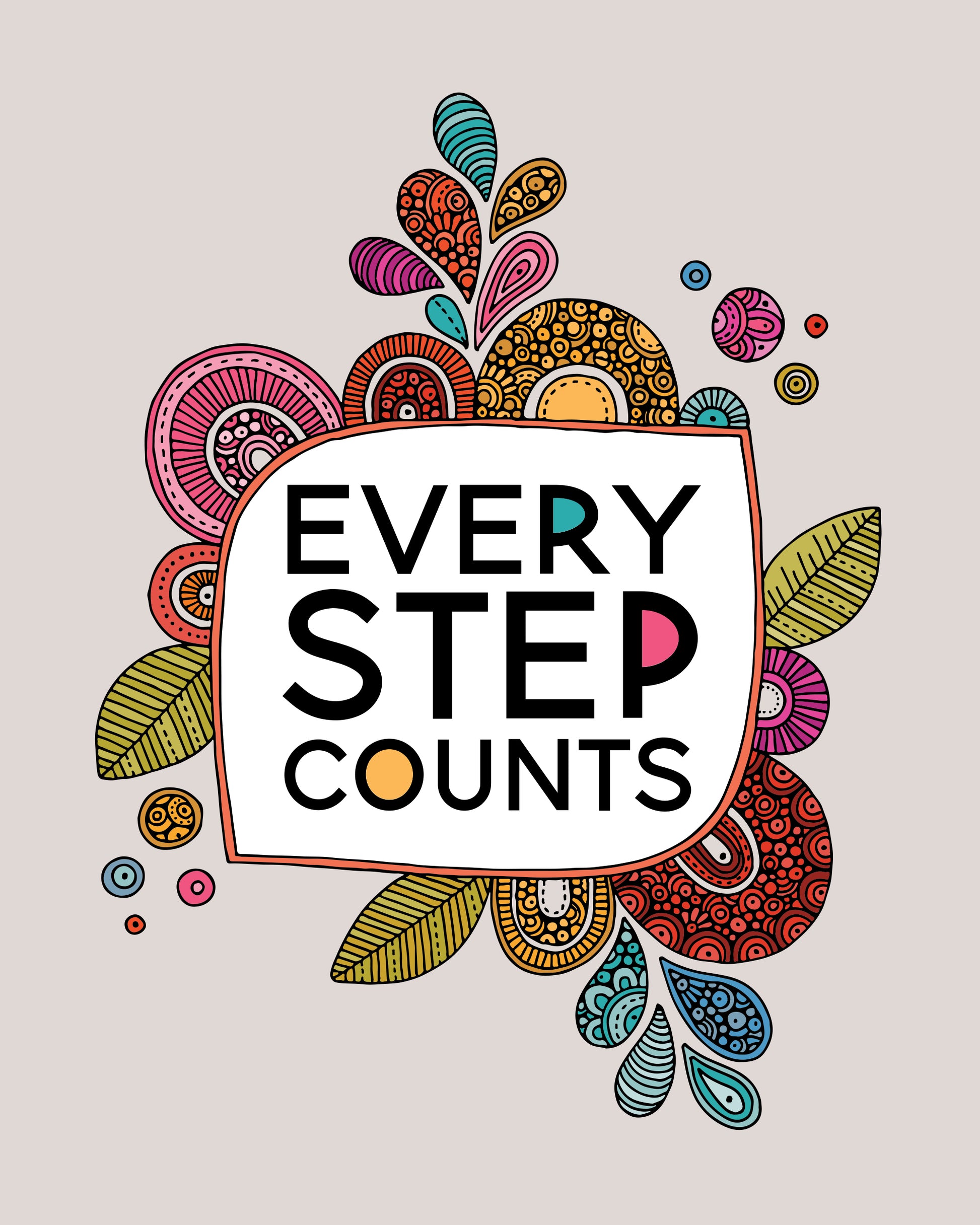 Every Step Counts, Motivational Art Print - Abstract Botanical Design