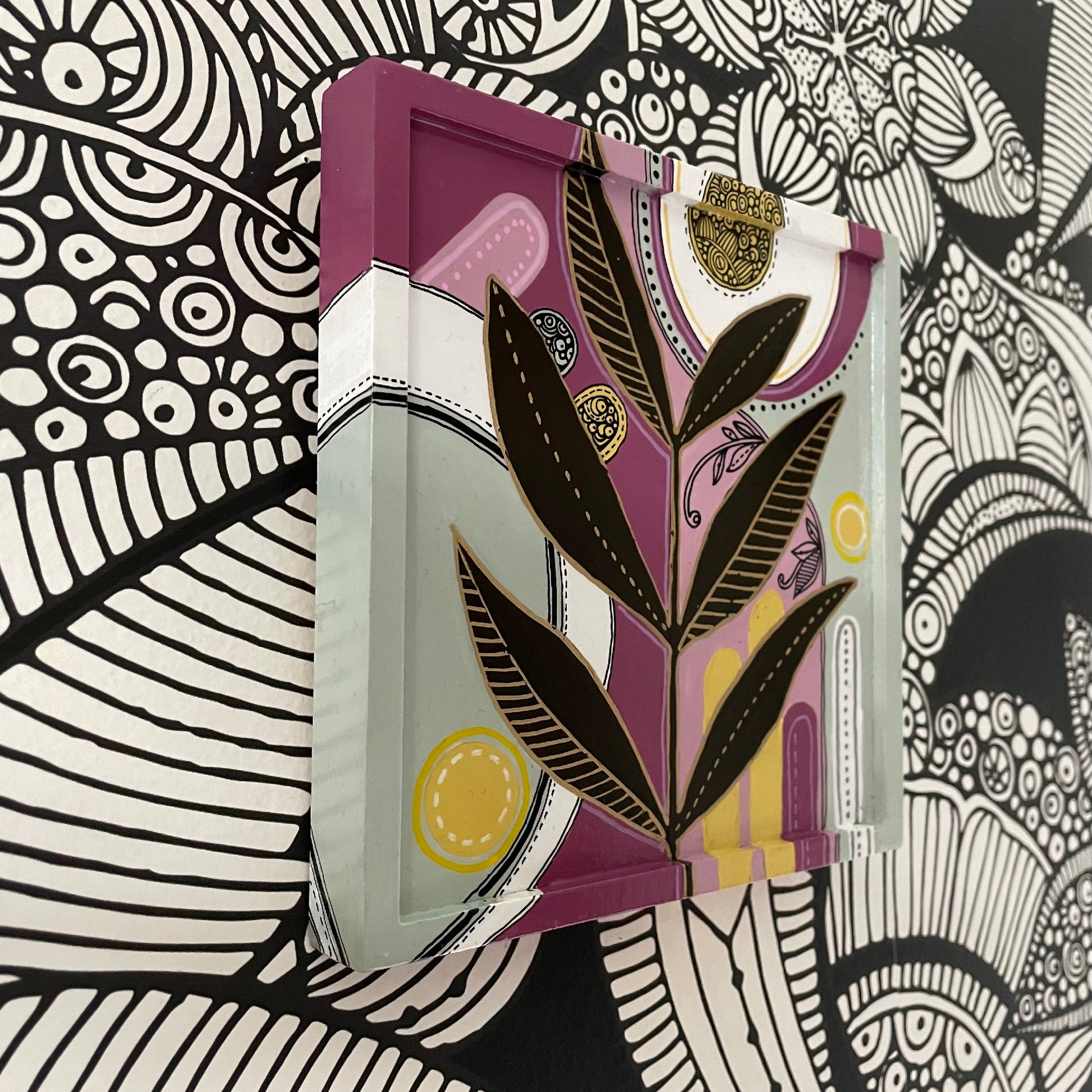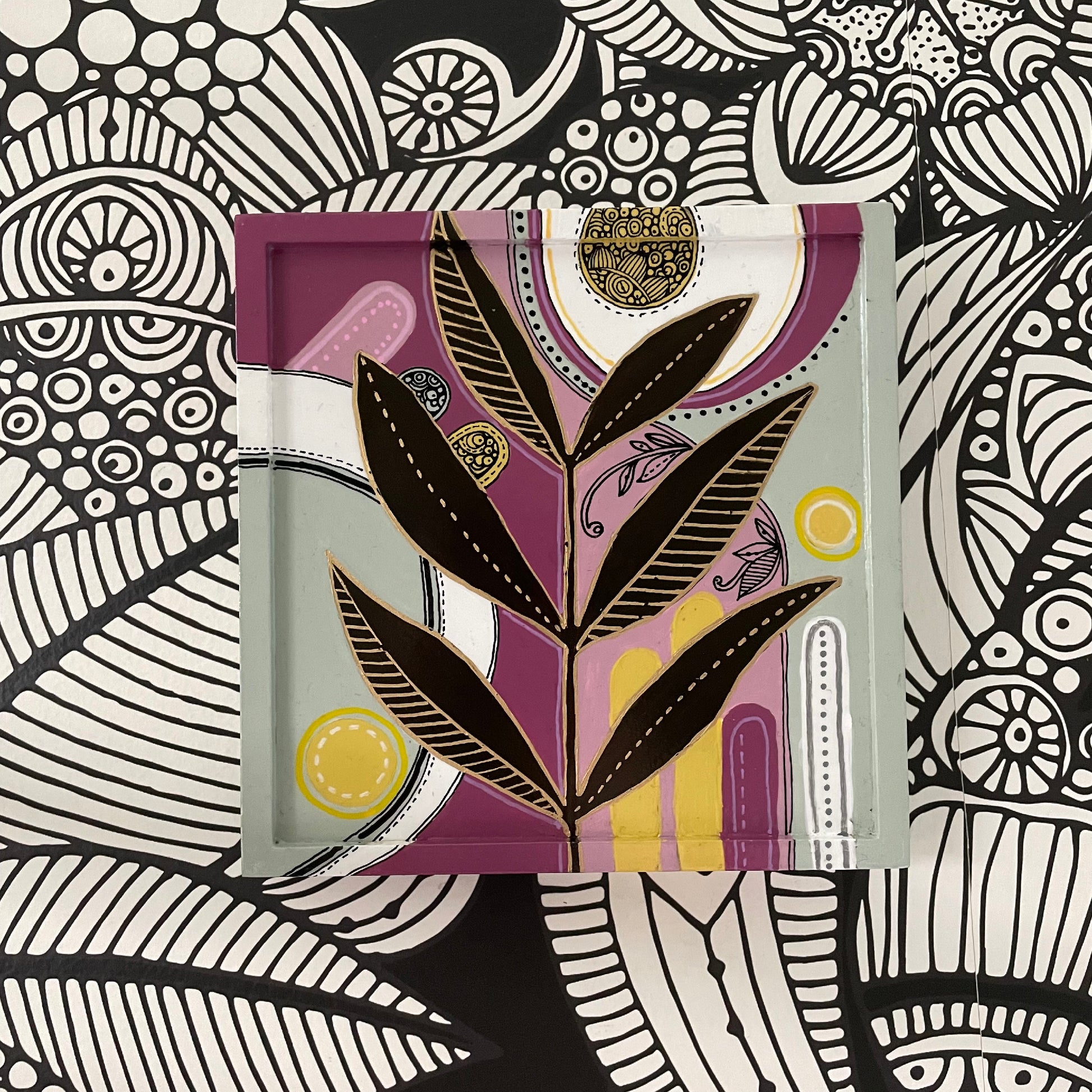 This original artwork is made on 6x6 inches gesso panel feature a 1/8" raised lip. 6x6 inches, 3/4" deep. The borders are painted I used acrylic paints, acrylic markers and rapidograph with ink for all the little details. This is an original hand painted item. Each of my artwork is complete original and unique with their own little imperfections too!