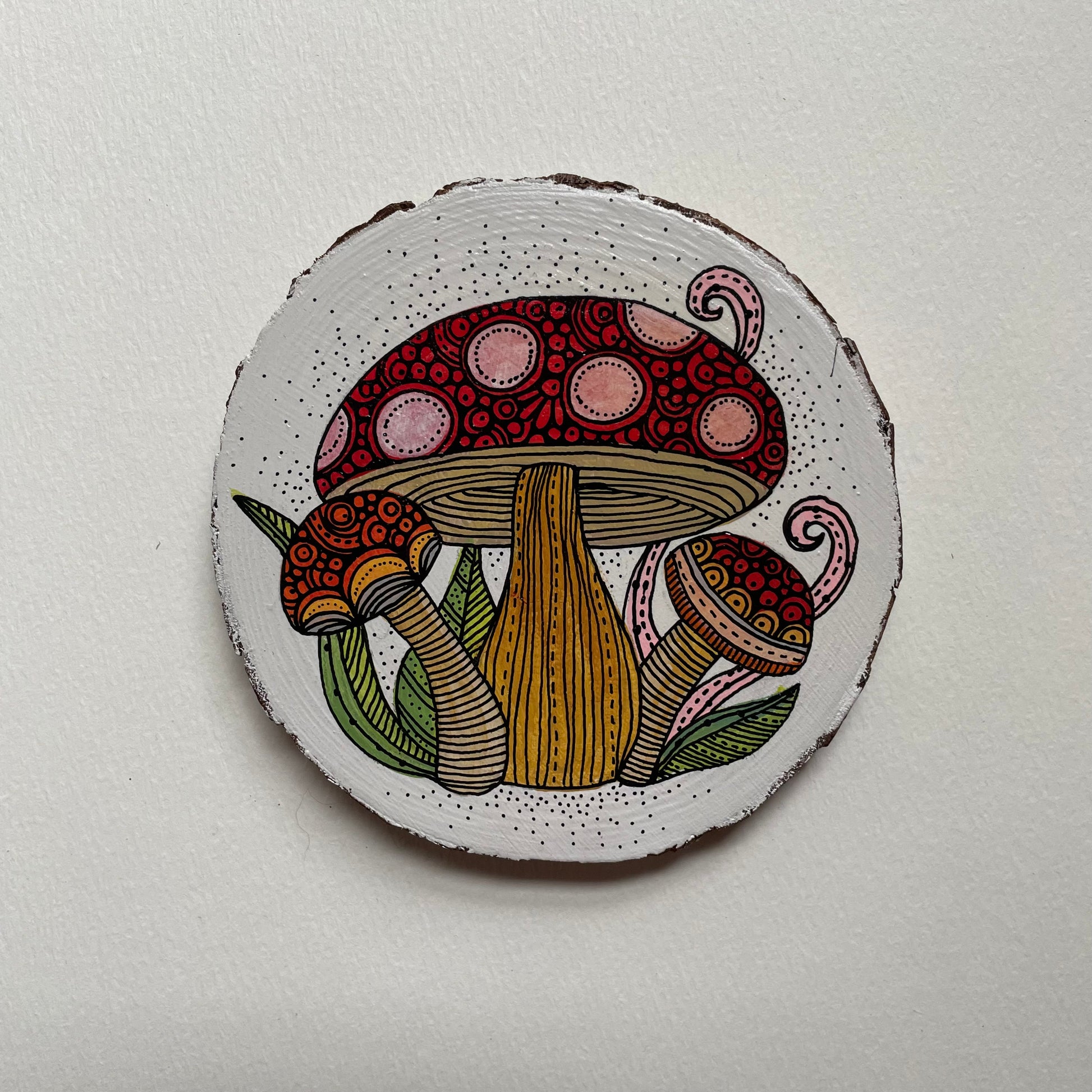 Original, one-of-a-kind hand-painted wood slices, each wall hanging features a cute tassel and a small charm for an extra special touch. I painted every slice using acrylics and added all the fine details with pen & ink, using a rapidograph and a tiny brush.