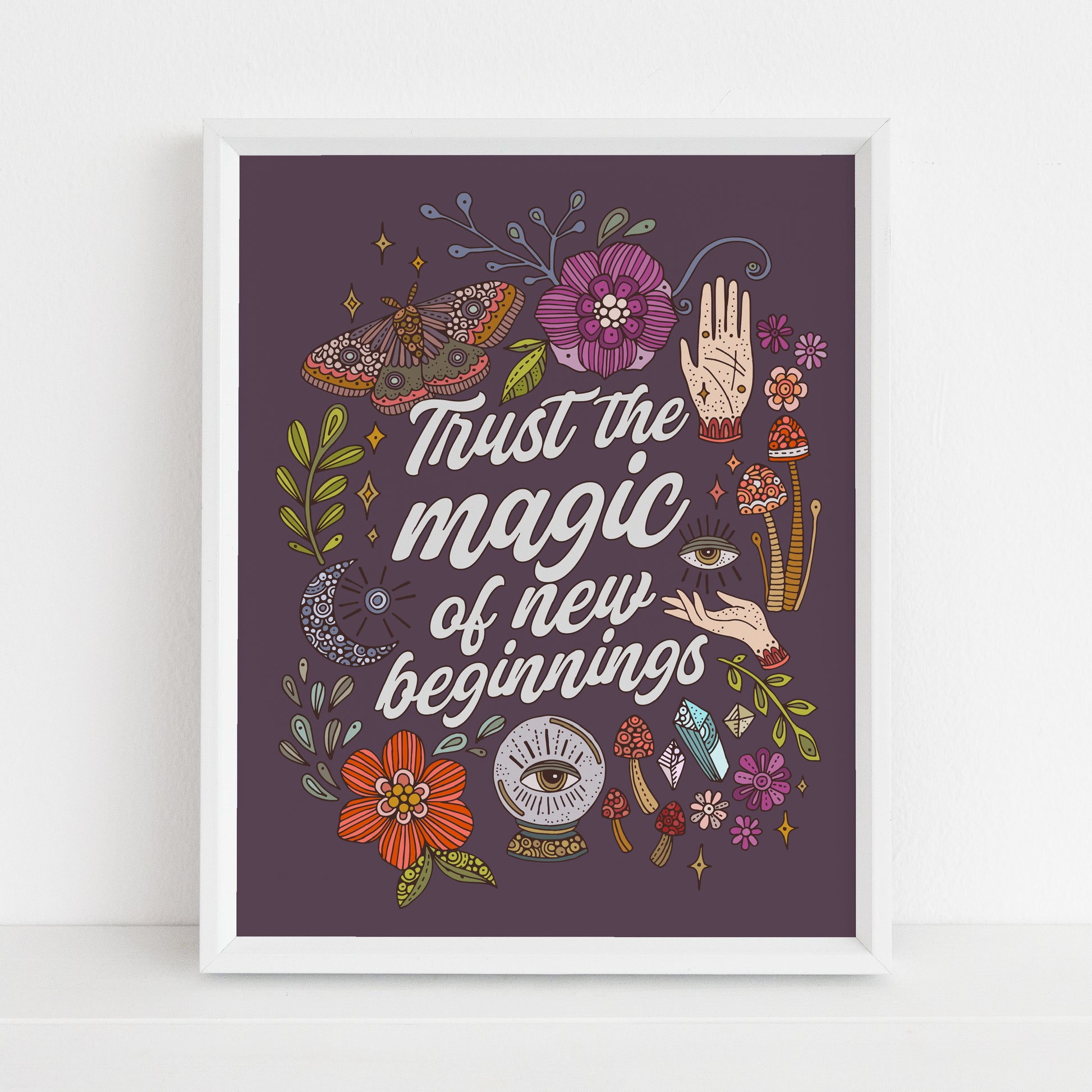 Trust the Magic of New Beginnings, Art Print - Mystical Floral Decor